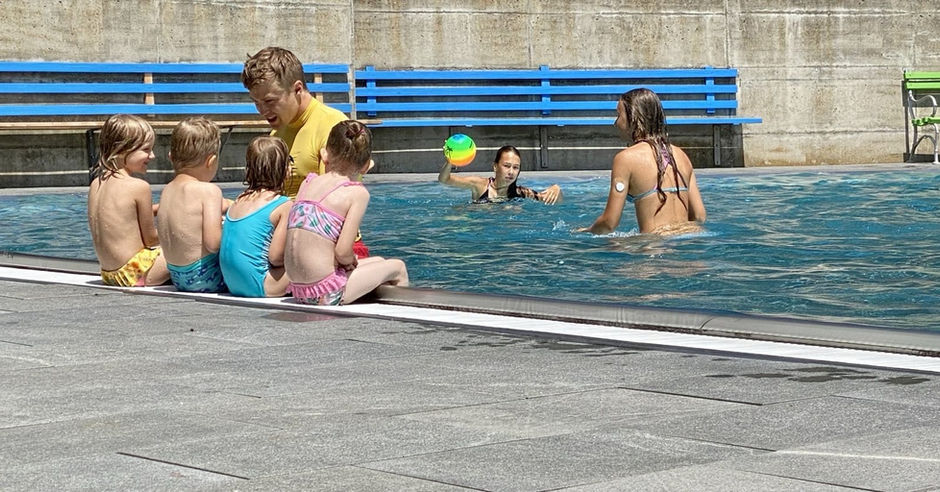 Schwimmbäder und Pools sind optimal, am besten mit einem abfallenden Becken ab ca. 90 cm Tiefe. Die Temperatur sollte nicht zu tief sein, da besonders Kindern schnell kalt wird.
